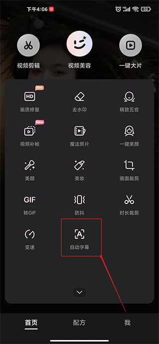 2、用户可以选择语音识别字幕也可以手动添加字幕。