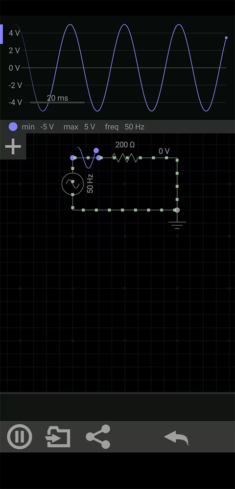 Every Circuit苹果手机版是一款电路模拟工具,该软件具有易用性和高度互动性的特点,可以让学生以有趣的方式复习电路知识,其丰富的元件库还可以让用户自由设计任意模拟或数字电路,从简单分压器到晶体管级复杂电路都可以实现。在使用EveryCircuit时,用户可以选择在实例内选择自己感兴趣的电路进行模拟。每个电路实例都有简单的介绍,使得用户可以更好地理解电路的功能和原理。了解基本使用方法后,点击工作界面中的图示,就可以进入该电路图的工作界面,但是在运行电路之前,一定要记得接通电源哦,即使是用户自己建立电路图,也要记得接通电源,否则电路无法正常启动。