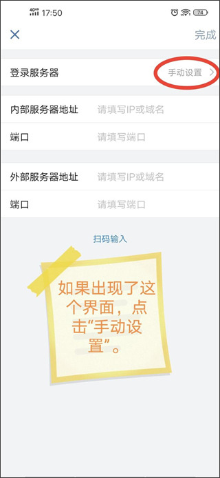 2、登录服务器选择“手动设置”。