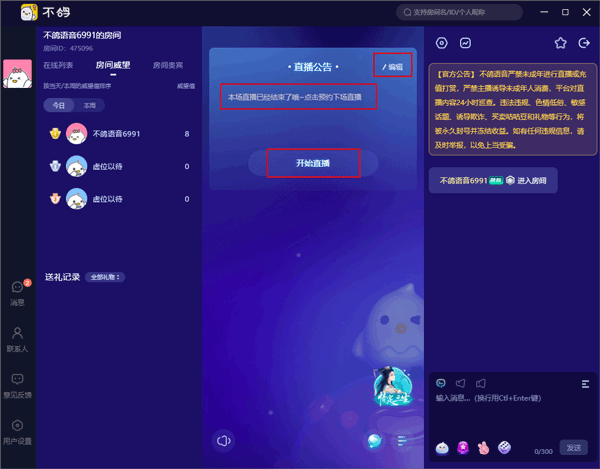 在这里主播不仅可以一键发起直播,还支持自定义房间玩法选择,切换麦位、拉人上麦、锁麦、打赏、添加管理员、禁言等操作。同时还可以与千万粉丝一起在线互动,连麦畅聊,在线K歌,分享自己独特才艺与精彩生活,更有机会得到丰富酷炫的礼物特效哦,除此之外,你也可以在不鸽直播助手中搜索其他主播的房间号加入,加入后可正常进行聊天、上麦、打赏等操作哦,那么有需要的用户快来下载使用吧!