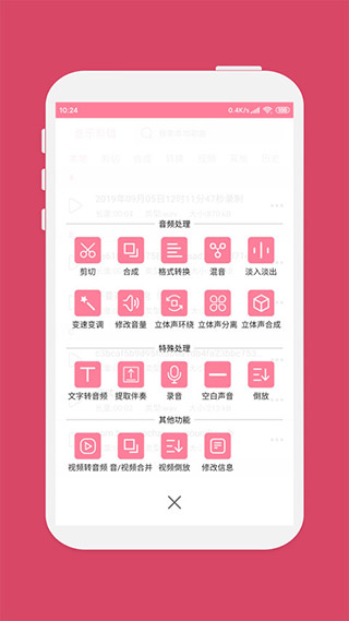 轻松实现音频的变速、升调、降调、增益、噪声、变音、均衡器等效果,内置多种场景音效!