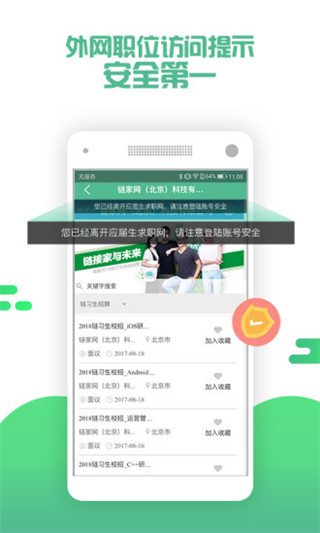 应届生求职ios版是一款专为广大应届生精心打造的手机求职软件,该软件充分利用互联网大数据优势,以应届生求职为出发点,整合全国各地多家优质企业,汇集海量最新最热的校园招聘信息,帮助他们及时掌握更多招聘信息资讯,而企业搜索、职位查看、简历投递等多种实用功能,方便他们在线搜索查看心仪的企业并投递个人简历,还有笔试、面试进展详情实时更新,全方位助力应届生找到好工作~还等什么,赶快来下载体验吧!