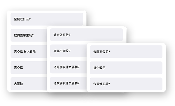 当然,除了对生活中简单的问题做出决定外。小决定还提供了各种模板以供参考,其中不乏「真心话」、「大冒险」及「掷骰子」这样极具趣味性的问题。让你在解决选择难题的时候,也能用它来为生活添些乐趣。