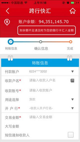 2、转账免费:通过跨行快汇进行跨行转账,不仅实时到帐而且尊享0手续费服务。