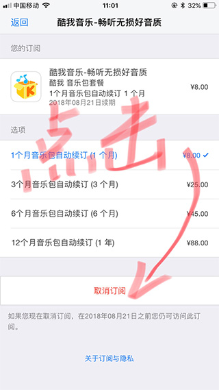 进入后找该软件的自动取消续费,点击取消订阅,即可。