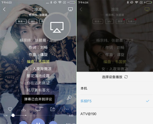 2、选择你家的电视设备,连接成功后,电视就会播放音乐了;