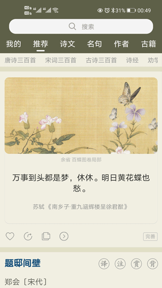 诗词,名句,古籍等内容,可以原文,译赏对照阅读。