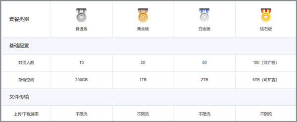 从微企业到大企业,从几十GB到几TB等多档套餐选择,满足企业海量不同数据的存储需求。
