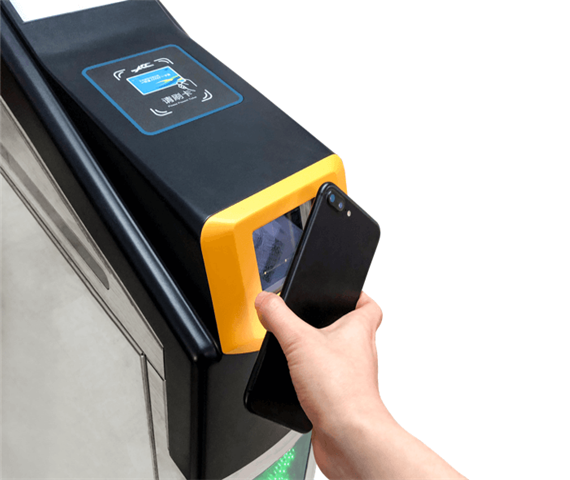 扫码过闸时,将易通行苹果版软件上的乘车二维码对准闸机上的黄色扫描区,识别成功后闸门打开,乘客即可通过。
