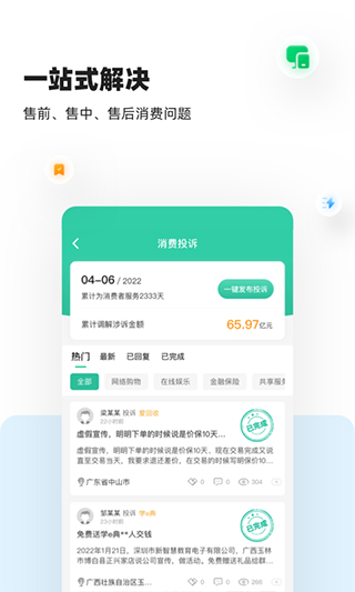 1、消费者购物、消费过程中,权益受损,消费保一键维权;