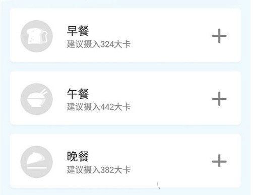 第二:点击之后就会跳转界面,可以看到一共有早午晚三餐可以选择记录;