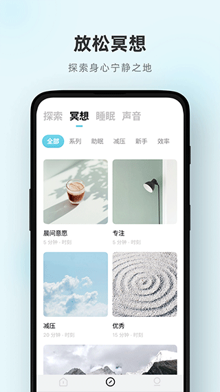 -全新的声音场景、睡眠故事、冥想练习播放器界面