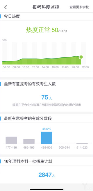 帮助你实时监测目标学校的关注热度,并提供动态录取概率、竞争者填报情况分析,防止因填报人数过多导致高分落榜。