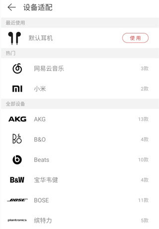 5、在设备适配中选择你的耳机品牌和型号就可以发挥出你的耳机最好的效果了。
