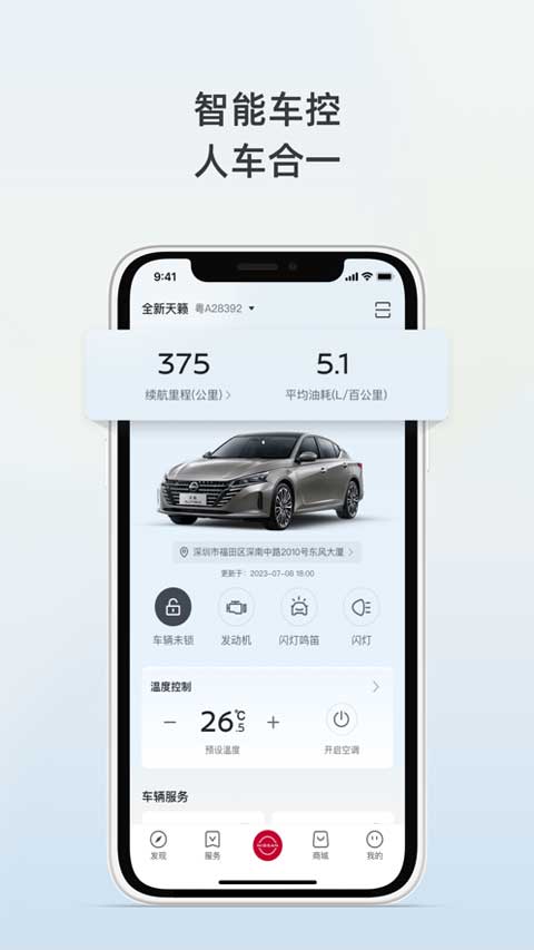 *注:因车型、车型版本配置的不同,日产智联APP所提供的功能有所区别。