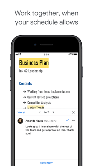 Google文档ios版是一款功能强大的智能文档编辑撰写软件,该软件能实现多人实时协作与团队成员共享文档、随时云端保存、多终端同步、成员管理和权限细分等一系列实用功能。除此之外,它利用Google的AI智能系统能为每位员工提供数据分析,相比传统协作方式有效提高25%到30%工作效率,而且毫秒级响应技术还能全面管控云上传的文件数据,能给予用户稳定安全私密工作环境~