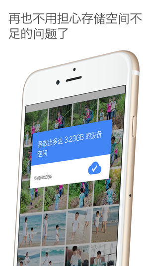 1、释放空间:您再也不用担心手机空间不足了。只需轻轻一按,已安全备份的照片就会从您设备的存储空间中移除。