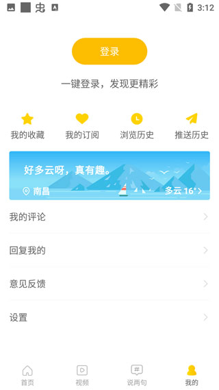 5、点击我的,可以在这里查看自己的登录情况、收藏、订阅等等