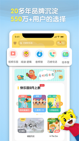 -结合每月主题商品和各大版块(亲子早教/阅读·逻辑、视频乐园、音频馆、每日推荐等)为您提供全方位的育儿支持,成为您专属的育儿加油站。
