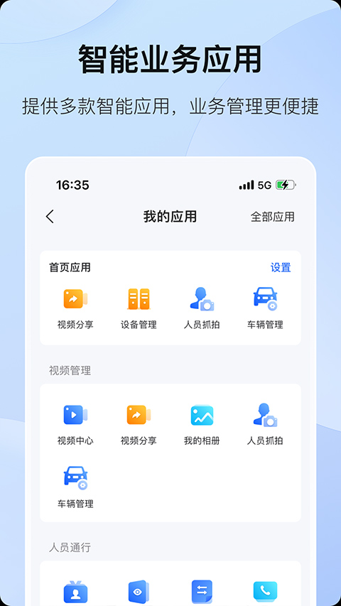 包含视频预览、视频分享、一键开门、访客管理、考勤统计、审批、人员管理、团队管理等数十种场景应用