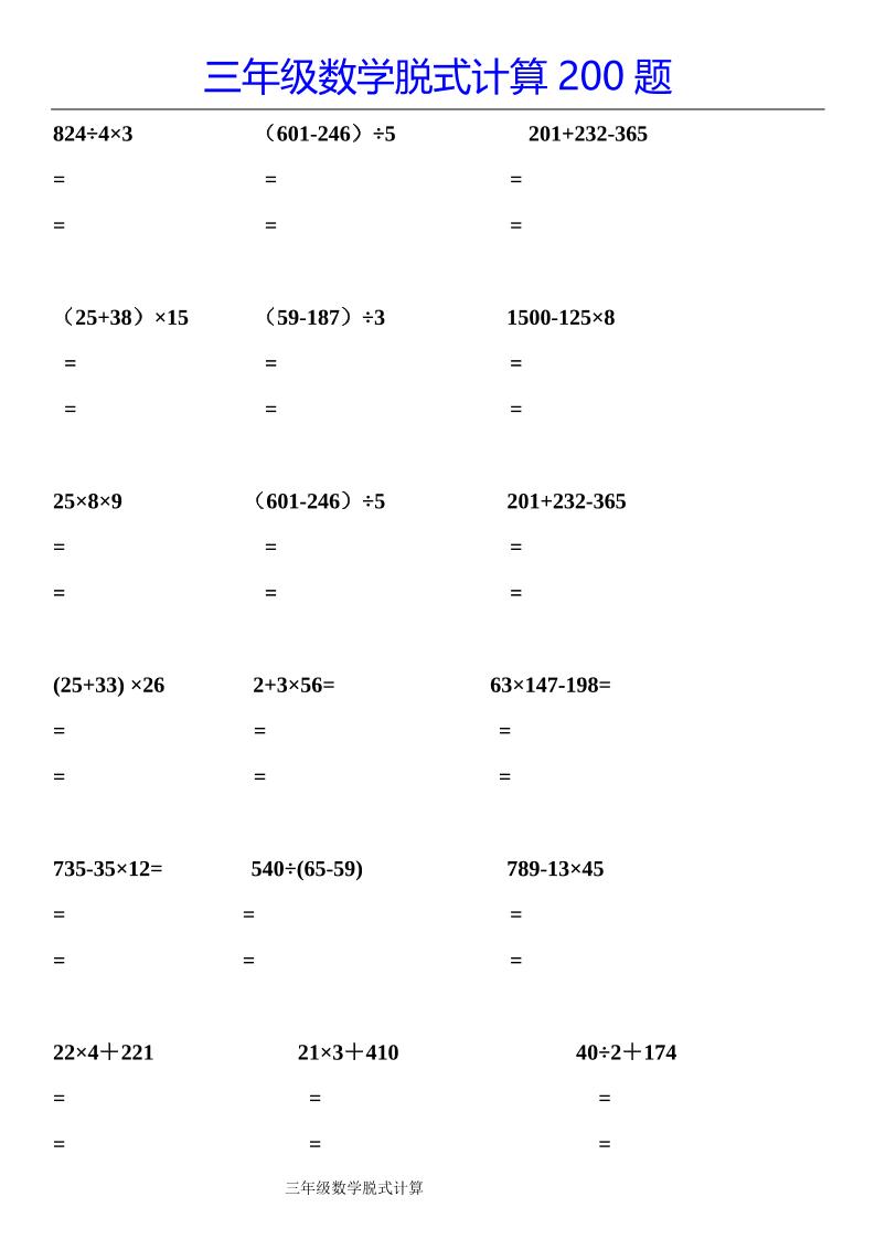 三下数学【脱式计算200题】努力的小梦6个月前更新关注私信0174 百度已收录三下数学【脱式计算200题】此内容为付费资源,请付费后查看梦币9.9黄金会员梦币1钻石会员免费立即购买您当前未登录!建议登陆后购买,可保存购买订单。微信支付联系微信:chen185599521付费资源已售 5 ——预览已结束,还剩10页未读——开通会员后可免费下载高清完整文档 © 版权声明 版权声明 1 本网站名称:梦帆创业网 2 本站永久网址:https://www.mfchuangye.cn/ 3 本网站的文章部分内容可能来源于网络,仅供大家学习与参考,如有侵权,请联系站长 QQ185599521进行删除处理。 4 本站一切资源不代表本站立场,并不代表本站赞同其观点和对其真实性负责。 5 本站一律禁止以任何方式发布或转载任何违法的相关信息,访客发现请向站长举报 6 本站资源大多存储在云盘,如发现链接失效,请联系我们我们会第一时间更新。 THE END学习资料 喜欢就支持一下吧点赞4赞赏 分享QQ空间微博QQ好友海报分享复制链接收藏